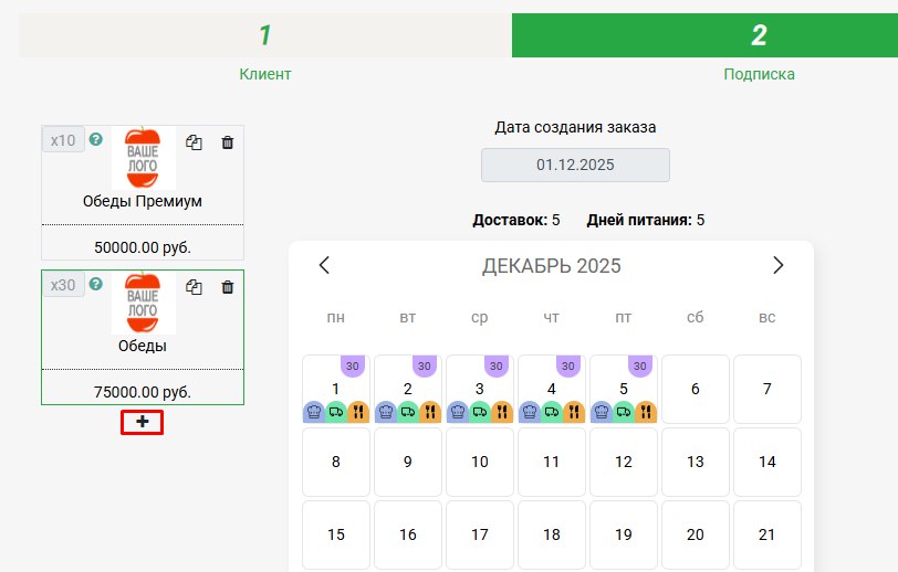 Это удобно, если вы, например, обеспечиваете корпоративное питание или поставляете рационы в фитнес-центры. Больше не нужно создавать десятки одинаковых подписок вручную. Просто задайте количество рационов оптом — система пересчитает цену и скидки, сформирует задание на производство и доставку.