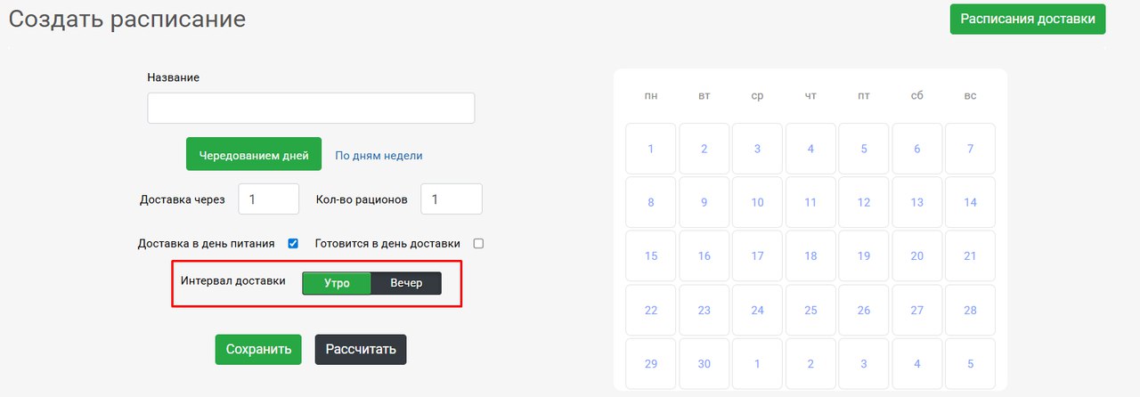 Расписание доставки с учетом интервала