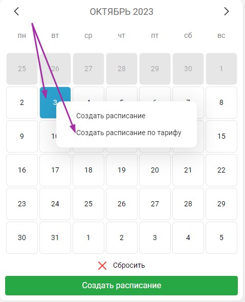 Расписание по тарифу