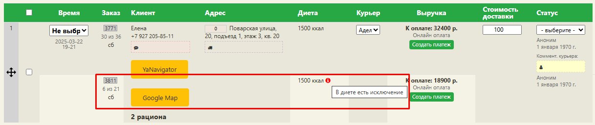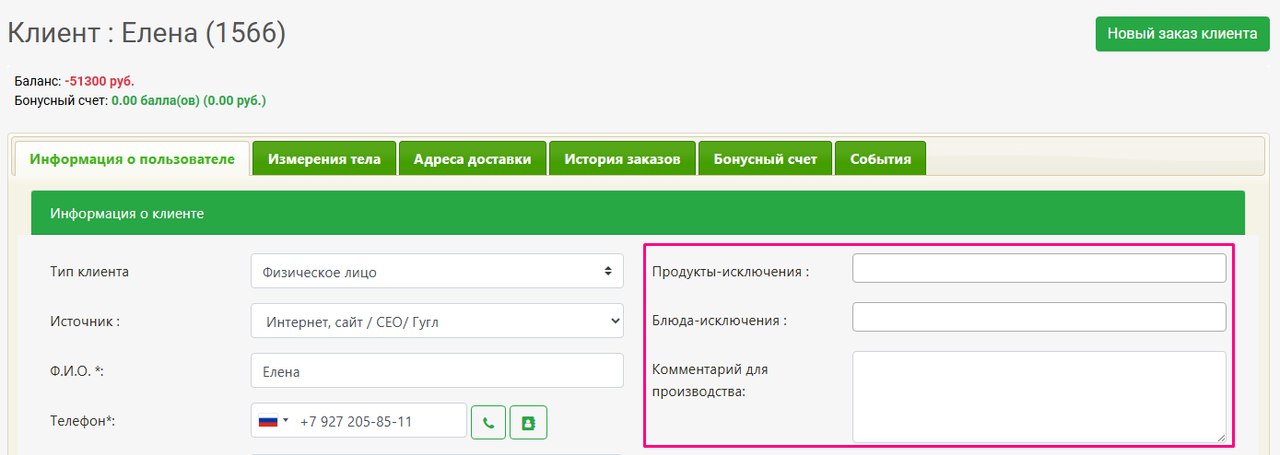 Добавили классную возможность разделения исключений-продуктов, -блюд, а также комментария производства для разных заказов одного клиента! Это позволит проследить историю предпочтений клиента, а также функцию можно использовать в случаях, когда клиент заказывает на себя и на другого члена семьи и у них разные предпочтения (пока нет возможности заводить такие подписки в один заказ - это сделаем следующим шагом). Как всегда, подробная инструкция ниже.