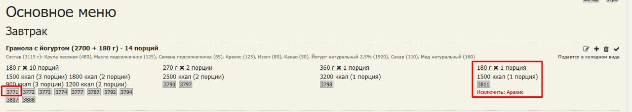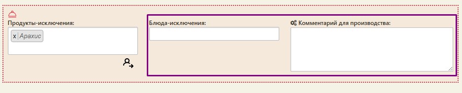 Аналогично работает для блюд-исключений и для комментария производства: