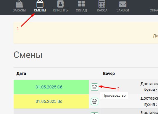 - вверху жирным выделены блюда, которые готовятся в эту смену [на скрине выше: Запечённая рыба]