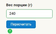 Тогда у блюда-замены для веса 240г следующие значения будут 360г и 480г, что соответствует коэффициентам 1,5 и 2 от базового веса 240г: