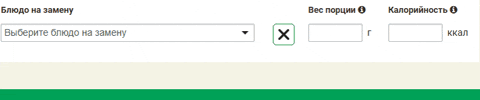 В нём можно внести изменения, применятся после нажатия кнопки Сохранить. Если нужно убрать замену, то нажимаем крестик справа от бокса блюда-замены и кнопку Сохранить: