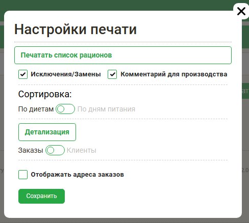 Чтобы не печатать Список рационов - нажмите на кнопку “Печатать список рационов”:
